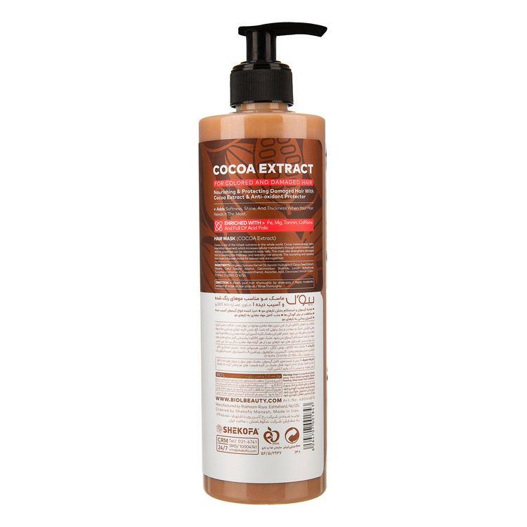 ماسک مو بیول با عصاره دانه کاکائو، محصولی تخصصی برای احیا و تغذیه موهای رنگ شده، دکلره شده و آسیب دیده طراحی شده است. دانه کاکائو سرشار از آنتیاکسیدانها، ویتامینها و مواد معدنی است که به بازسازی ساختار مو، افزایش درخشندگی و نرمی موها کمک شایانی میکند. این ماسک با نفوذ عمیق به ساقه مو، رطوبت لازم را تامین کرده و از خشکی و شکنندگی مو جلوگیری مینماید. همچنین، با محافظت از رنگ مو در برابر عوامل مخرب محیطی و شستشو، به حفظ شادابی و ماندگاری رنگ مو کمک میکند. فرمولاسیون ویژه این ماسک، بدون ایجاد سنگینی بر روی مو، باعث لطافت، لطافت و خوشحالتی موها میشود. حجم 500 میلیلیتری این محصول، آن را به گزینهای اقتصادی برای استفاده طولانی مدت تبدیل کرده است.