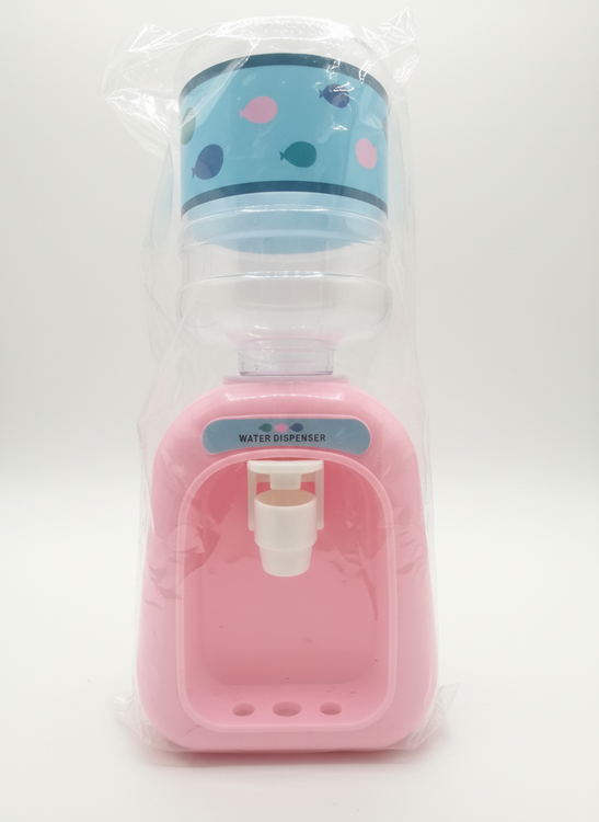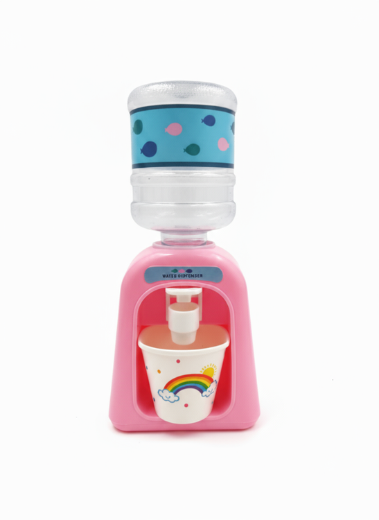دیسپنسر فانتزی مینی یک اکسسوری جذاب و کاربردی برای سایتهای آرایشی و بهداشتی هست – طراحیشده به شکل آبسردکن کوچک با بدنه صورتی رنگ، بطری شفاف در بالا با طرح ماهیهای رنگی و شاد (آبی، صورتی و سبز)، و یک لیوان کاغذی سفید با الگوی رنگینکمان، خورشید و ابر که حس بازیگوشی میده. این محصول از پلاستیک سبک و بادوام ساخته شده، اندازه کوچکی داره (حدود ۲۰-۳۰ سانتیمتر ارتفاع) و با فشار دادن شیر سفیدرنگ، مایع رو به راحتی داخل لیوان میریزه – بدون نیاز به برق یا باتری، فقط پر کن و استفاده کن!